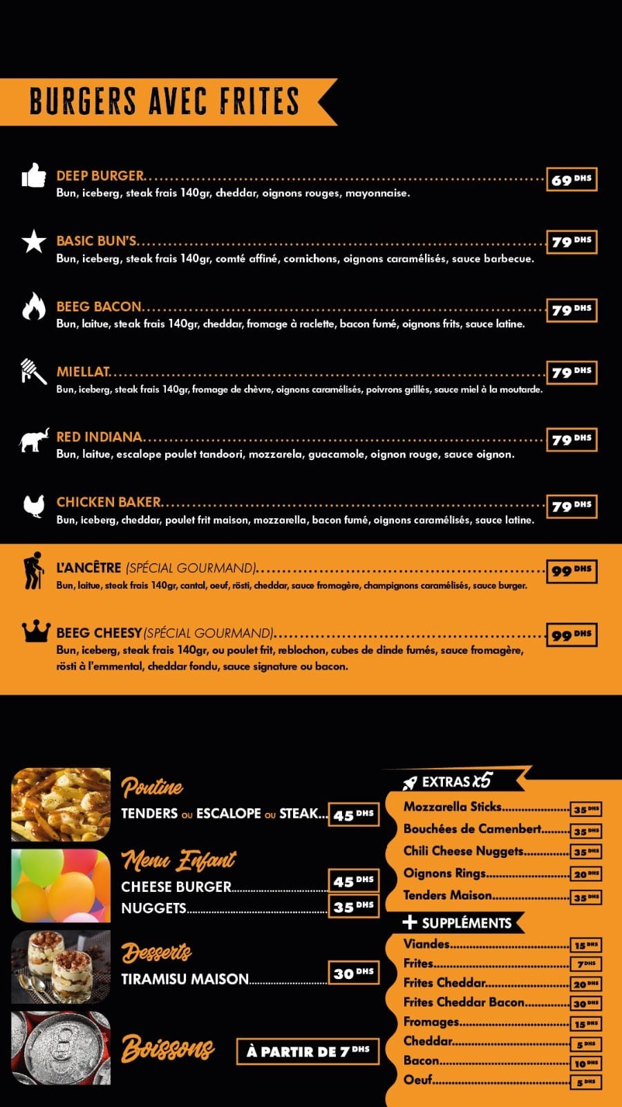 « Deep Burger, une destination incontournable pour les amateurs de burgers audacieux, est niché au cœur de Marrakech. Notre établissement incarne une expérience gastronomique moderne où chaque bouchée est une plongée dans l’univers délicieux des saveurs authentiques. Dès que vous entrez chez Deep Burger, vous vous lancez dans un voyage culinaire où l’audace et la qualité se rencontrent.