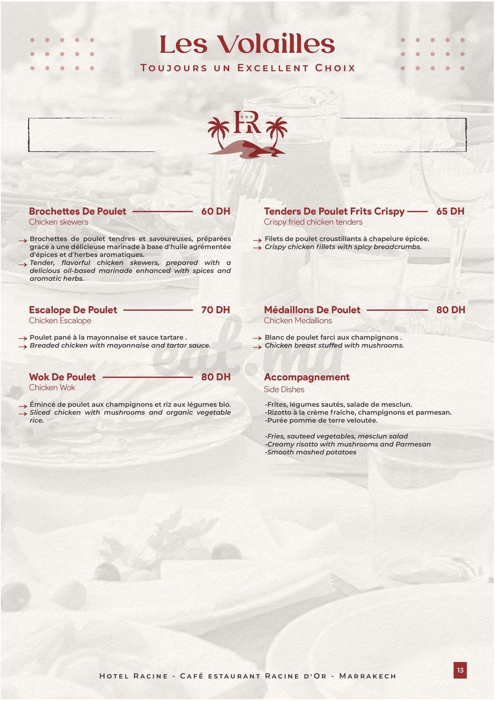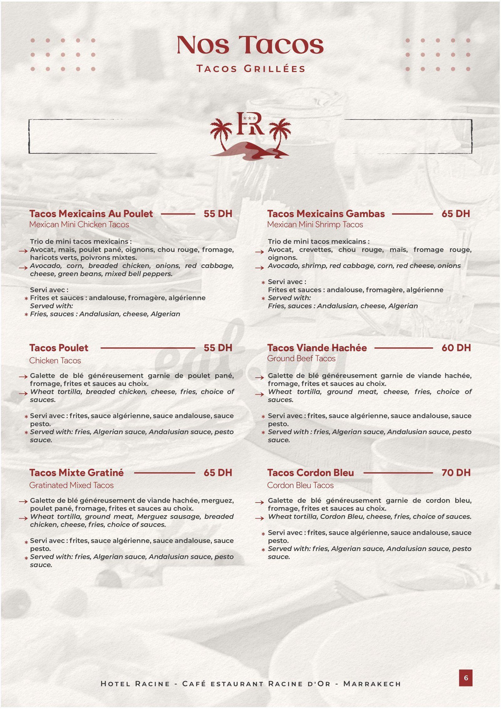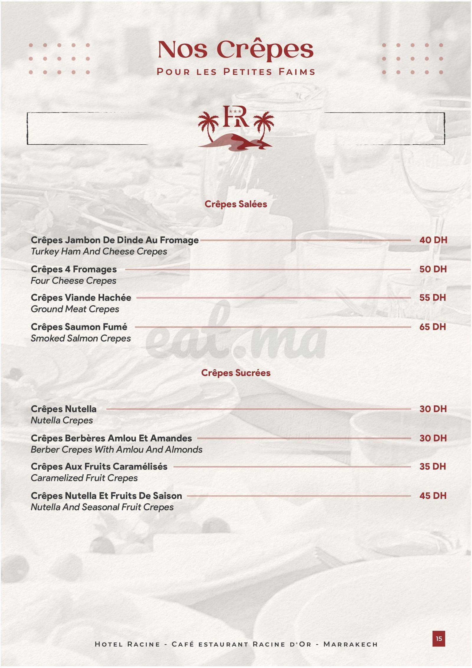 « Racine d’OR, une oasis culinaire raffinée située au cœur de Marrakech, incarne l’essence de l’élégance gastronomique. Notre établissement est bien plus qu’un simple restaurant, c’est une expérience où la passion pour la cuisine d’exception rencontre un cadre sophistiqué.