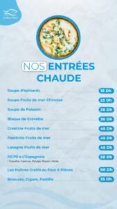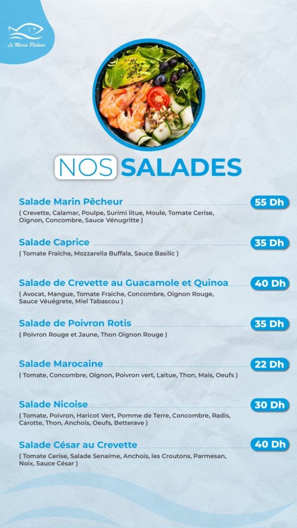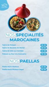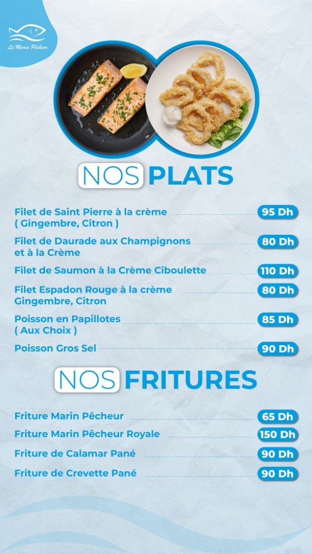 « Le Marin Pêcheur, niché au cœur vibrant de Marrakech, dépasse largement le simple cadre d’une expérience culinaire spécialisée dans les fruits de mer. C’est une authentique oasis culinaire, imprégnée de fraîcheur et d’authenticité, qui offre à ses convives une expérience sensorielle inoubliable. Notre établissement marie harmonieusement les saveurs marines exquises avec une hospitalité chaleureuse pour créer des moments mémorables. Dès que vous franchissez les portes du Marin Pêcheur, vous êtes transporté dans un univers enchanteur où chaque détail est soigneusement pensé pour éveiller vos sens. L’atmosphère y est à la fois apaisante et animée, vous invitant à la détente tout en vous imprégnant de l’énergie vibrante de Marrakech. Notre menu met en avant une sélection exceptionnelle de fruits de mer, provenant des eaux les plus pures et les plus riches en saveurs. Des huîtres fraîches aux crevettes juteuses et aux poissons grillés à la perfection, chaque plat est préparé avec expertise par nos talentueux chefs, qui maîtrisent l’art de la cuisine marine avec passion et dévouement. Ce qui rend vraiment l’expérience au Marin Pêcheur si spéciale, c’est l’attention portée à chaque détail. De l’accueil chaleureux dès votre arrivée à la dernière bouchée de votre repas, notre équipe dévouée veille à ce que votre expérience soit absolument parfaite. Venez découvrir notre cuisine où la fraîcheur de la mer rencontre l’authenticité de Marrakech, pour une expérience culinaire unique en son genre. Avec une variété de plats exquis et une atmosphère enchanteresse, le Marin Pêcheur promet une expérience gastronomique inoubliable à tous ceux qui franchissent ses portes. »