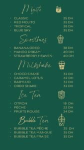 « My Brunch, une expérience matinale exceptionnelle au cœur de Marrakech, incarne l’art de savourer les délices du petit-déjeuner dans une atmosphère chaleureuse et accueillante. Notre établissement n’est pas simplement un lieu où l’on prend le petit-déjeuner, c’est une célébration du brunch, un moment où la diversité culinaire rencontre la convivialité.