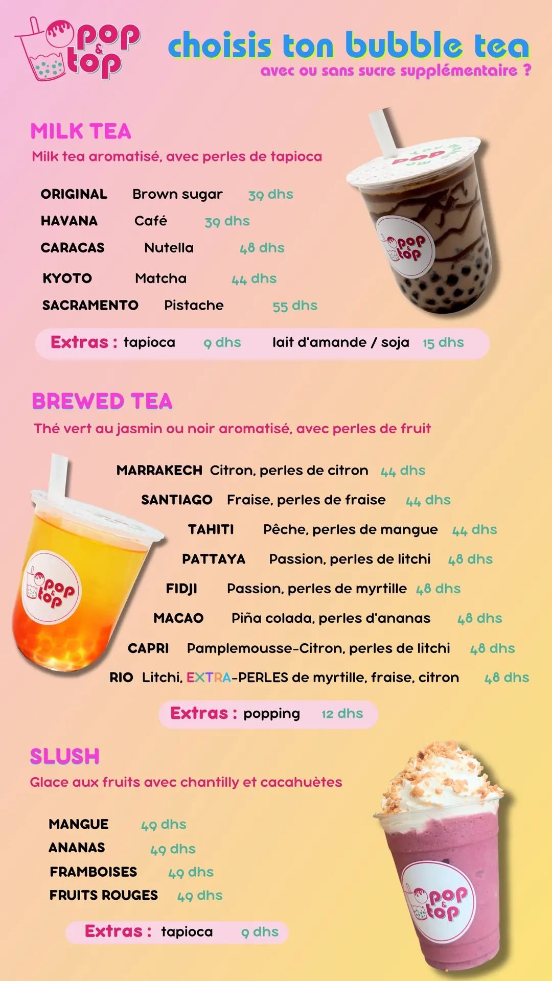 « Pop and Top, une expérience gourmande au cœur de Marrakech, incarne l’esprit de la créativité culinaire dans un cadre dynamique. Notre établissement n’est pas simplement un restaurant ; c’est une aventure où les saveurs inédites et les concepts innovants se rencontrent pour créer une expérience culinaire unique.